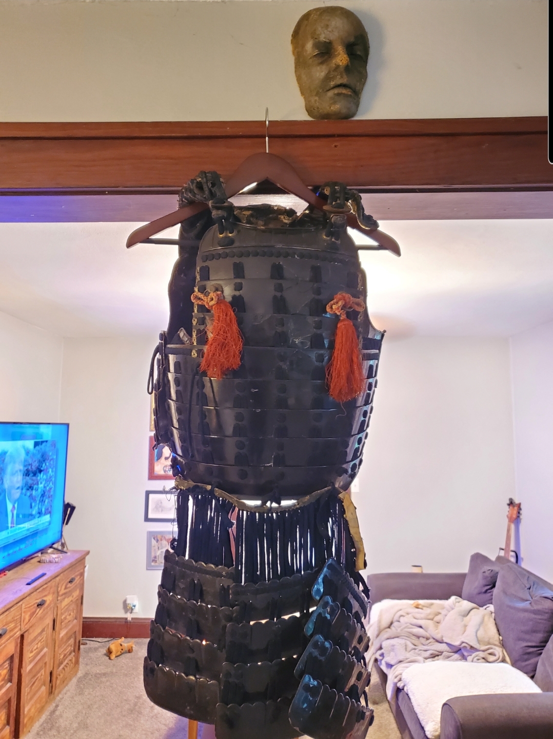 waljamada Posted July 24, 2020 Author Report Posted July 24, 2020 Piers, the armor is some kind of navy blue laquer. So ill look for a menpo that has a navy blue string to match it. In terms of the kabuto I'm not so sure I actually want one. I almost like the idea of a floating menpo above the armor more, a bit more minimalistic. I will however keep my eye open for a kabuto and I prefer the simpler variations. I might however go for a matching pair of sode at some point as well.