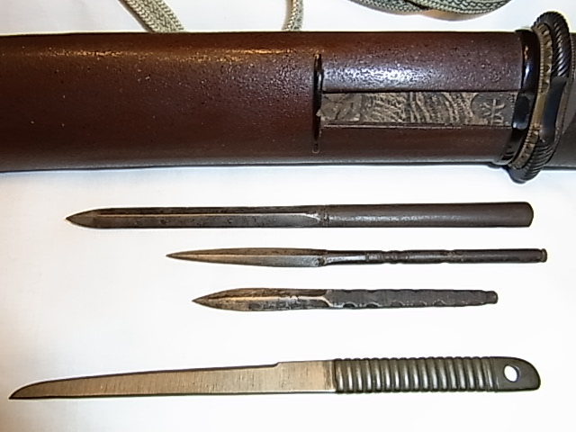 Bugyotsuji Posted April 19, 2010 Author Report Posted April 19, 2010 These are the candidates for the Hitsu side slot. The Kogatana/Kozuka is a solid piece of shibuichi, and suddenly seemed to be the perfect solution. The three Bashin are tetsu. The slot is triangular in cross-section. Hard to see because the horn entrance has been rather nibbled away. The Bashin all slide in easily. The Kozuka/Kogatana would break the Hitsu if forced in. Quote