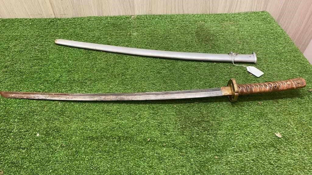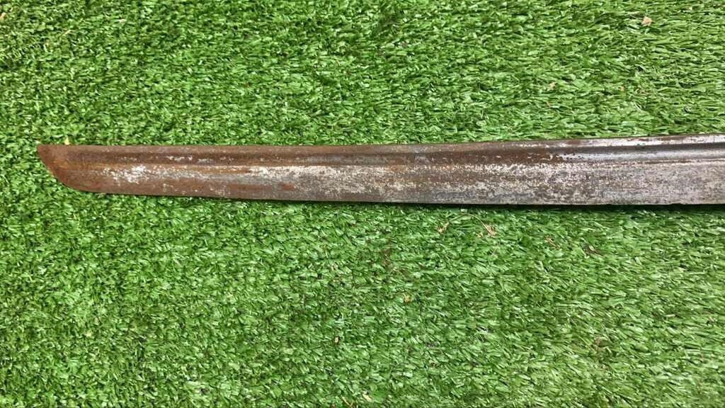 Shamsy Posted February 7, 2022 Report Posted February 7, 2022 100% Genuine but rough condition with repainted saya, deformed handle (not uncommon and one small reason the handles became aluminium), rusty blade and maybe a replacement barrel bolt. The barrel bolt is the only real issue, but it's hard to see what is going on there. Fuchi stamps are on the other side so you can't see them. I mean, if it matched it would be okay, but not really a great example. Quote