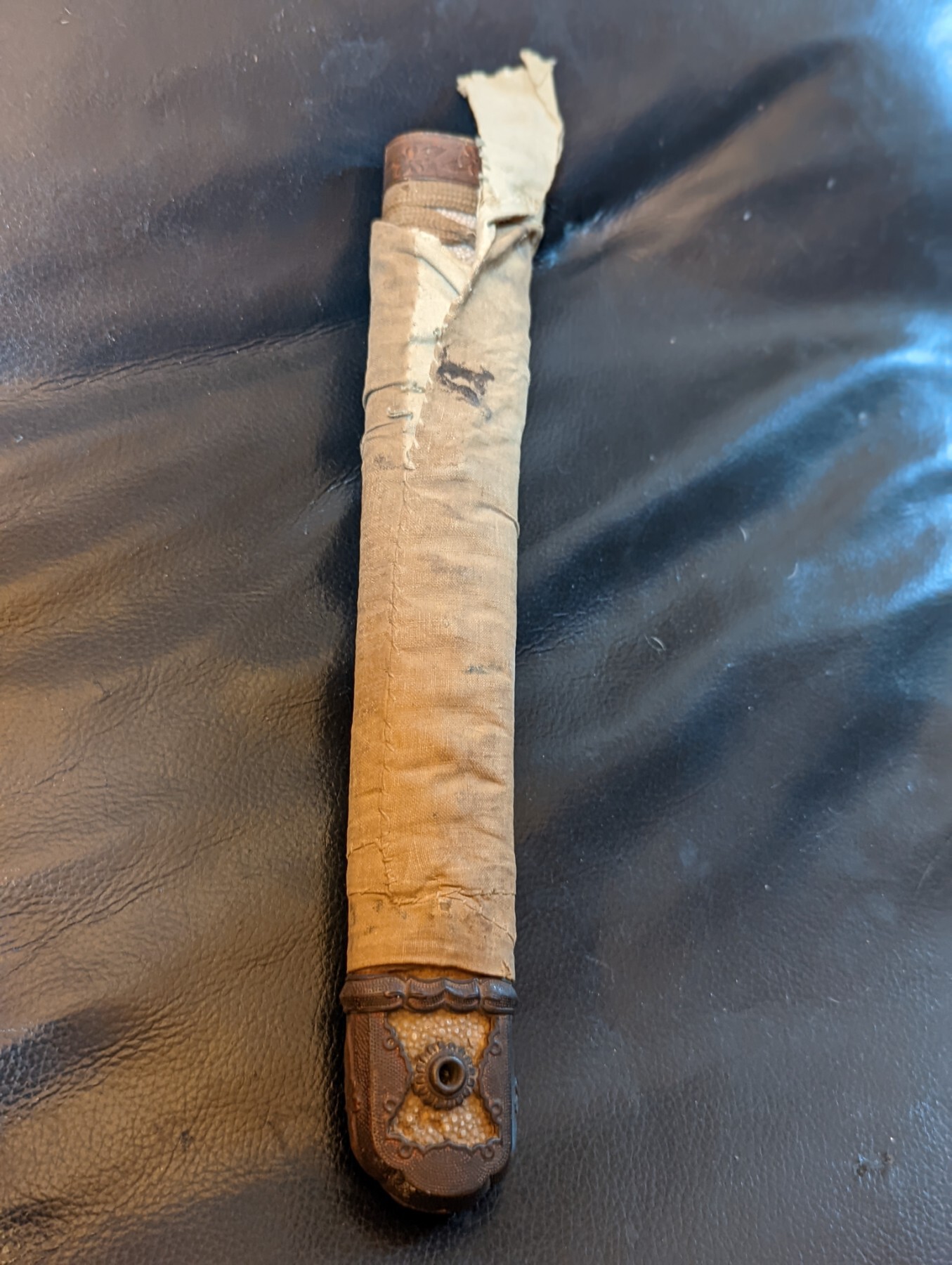 Lareon Posted February 20, 2022 Report Posted February 20, 2022 Picked this up today from Ian Chapman at the Birmingham arms fare. It's an unwanted item from a museum donation from an ex collectors estate. Looks to be a brand new tsuka in mint condition. Wrapped and stitched completely in cloth. I haven't and won't be unwrapping it but wanted to share with everyone. Original "packaging" ? 5 Quote