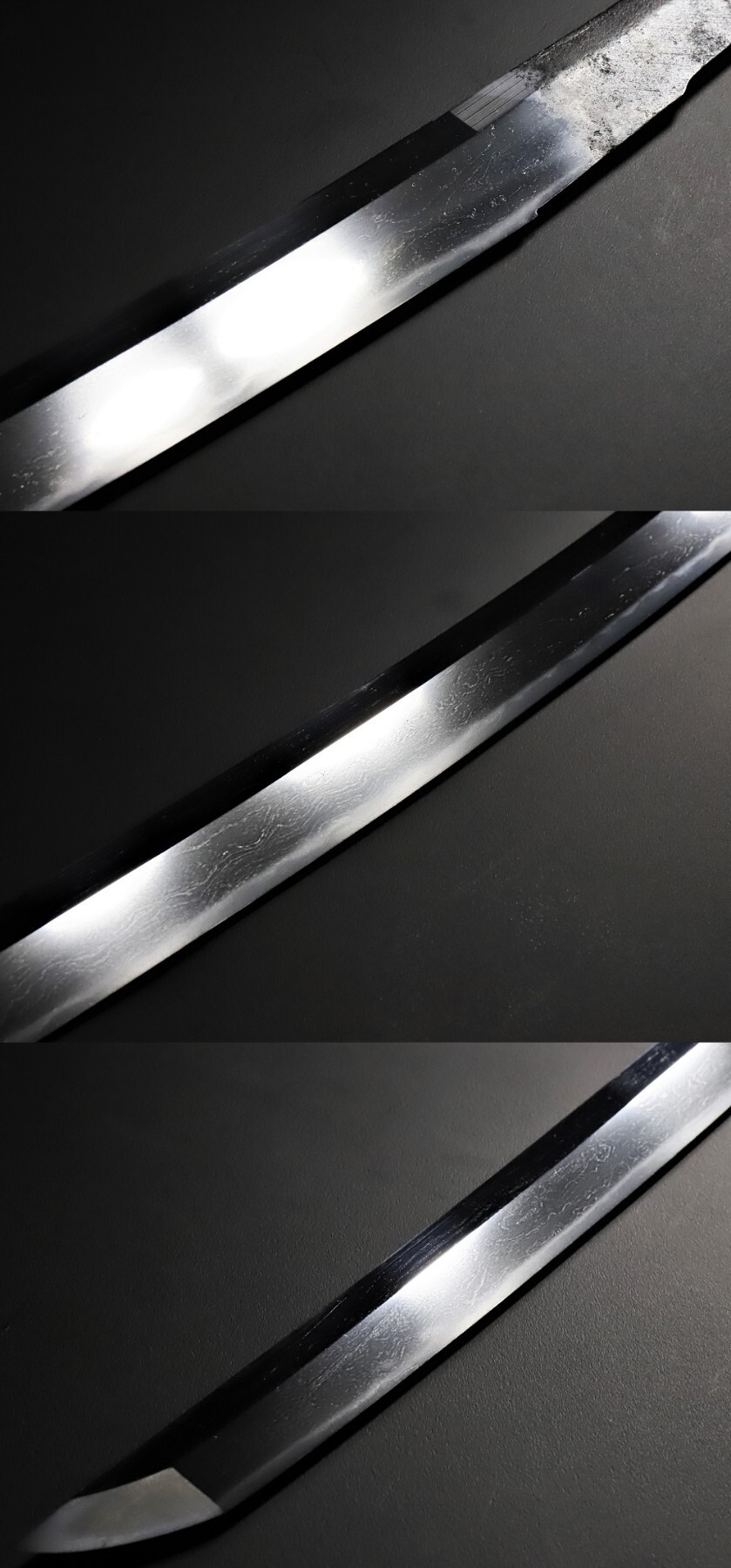 Baba Yaga Posted April 12, 2022 Report Posted April 12, 2022 There are several kizu/kitaeware flaws on the blade and they are visible through the images. However, I can tell you that there is no serious flaw. Considering the history, current conditions are quite natural and tolerable. This blade was forged in the Nambokucho era, over 600 years ago. It has a rich history and compared with other swords with the same tachi, it is natural. The Hamon and the Boshi are clear and the faint Utsuri is visible. In hand, this blade appears to be mature and robust. This answer was in response to a question about the partially erased Kikumon/Ichi: It is not a Kikumon, but someone probably engraved Kikkumon and ichi to try to be recognized as a Kikugosaku. Kikugosaku swords mostly became national treasures, which were forged for the Gotoba Emperor in the early Kamakura Period. I think the style and shape of the sword resembles that. Later, it appears as if someone tried to grind the non-legitimate Kikugosaku, but you can still see a little of the symbol. NBTHK recognized it as Mumei and not Kikugosaku. That answers all the question for me NOT buying the sword. Why go any further in picking it apart? Quote