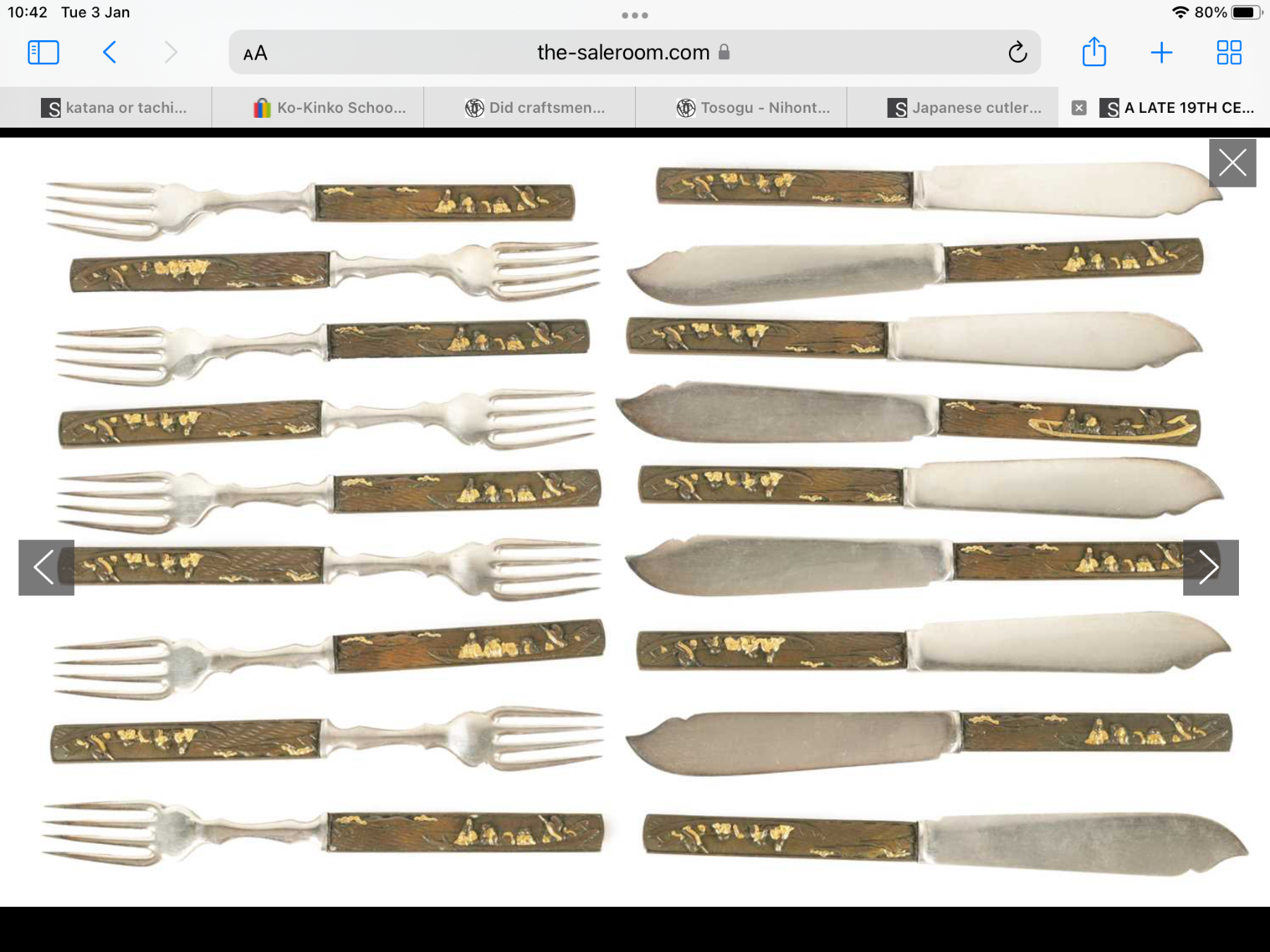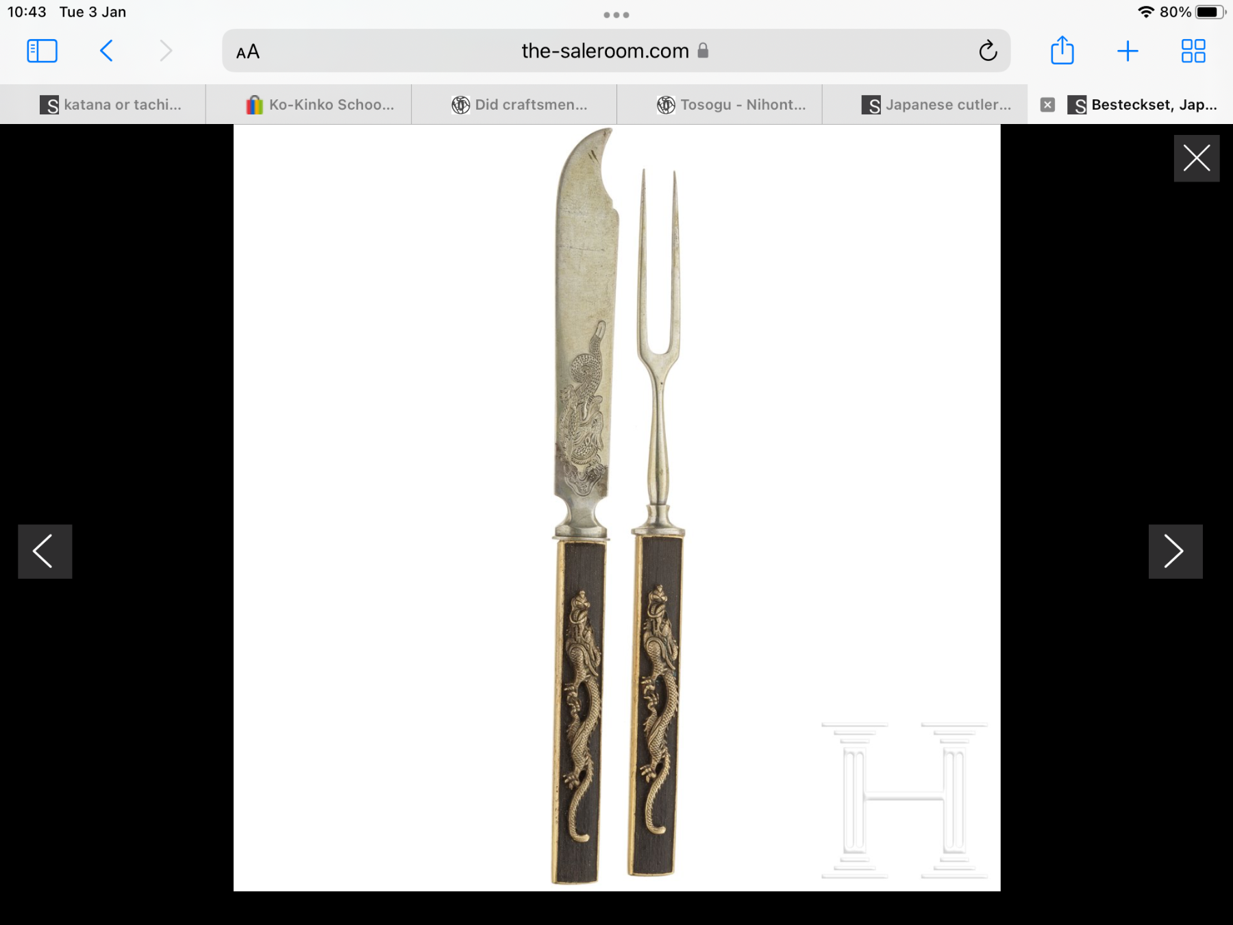 Matsunoki Posted January 3, 2023 Report Posted January 3, 2023 Many “kozuka” were made cheaply and non traditionally in the Meiji period for sale to foreigners. They are often found as handles on cutlery sets intended for Western consumption. It is very common to find exactly the same design used more than once within the same boxed set of knives, forks etc. The method of production is to use a solid substantial back plate with the front plate simply being a pressing stamped from a thinner sheet of various metals. The design can be convincingly mulitpatinated and gilded to give the impression of a traditionally made item. I believe they are called “shiremono”….but I may have spelt it wrongly. Of course as multiples are pressed from the same mould they are exactly the same. The “kozuka” in question here does look like such a pressing and a quick glance suggests it is exactly the same as the one for sale looking at the background pattern especially. Just an opinion …….but hook your fingernail into the blade aperture and see if the front edge of the top plate has a lip on it where it has been rolled over to give the appearance of a thicker plate of metal. 1 Quote