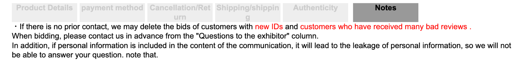 Seth Posted June 3, 2023 Author Report Posted June 3, 2023 Should I be concerned about this? It is in the body of the listing. Or is this just the actual seller's notes and not buyee terms? Will be my first purchase through buyee if I win of course.