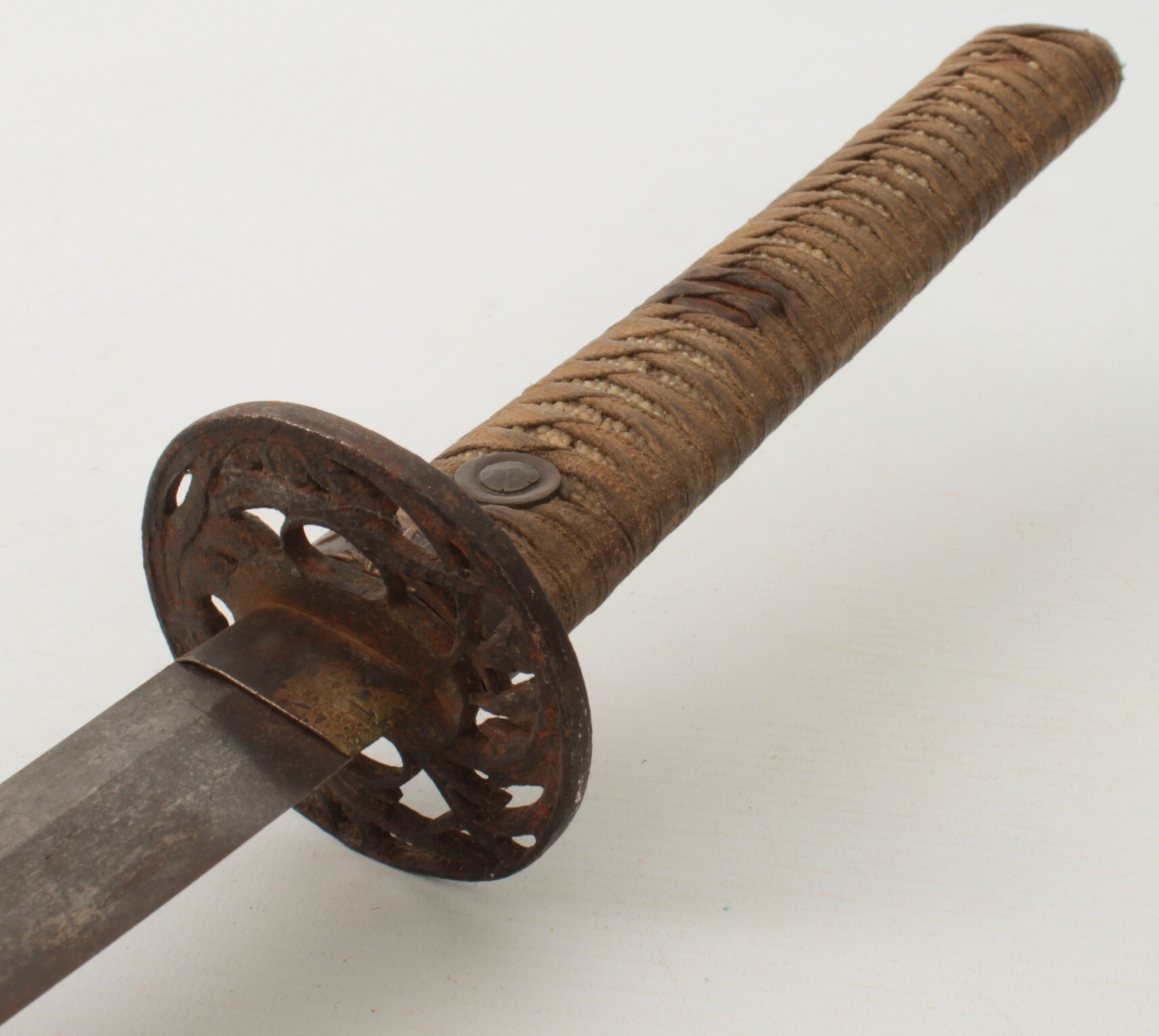 George KN Posted October 15, 2024 Author Report Posted October 15, 2024 Yeah, it's likely not the best piece... I just can't get over why someone would ever decide hammering a permanent rivet was a good idea. They've thought a little about potential damage by adding a washer to distribute the weight, but I didn't think the mekugi was ever a point of failure during combat? Perhaps the satsuma koshirae weren't very well fitting, and this was a hasty attempt to fix that? There are one or two other examples of modern rivets on the forum, like this one: From here: https://www.militaria.co.za/nmb/topic/37912-assistance-please/#comment-393113 And another (but this time a yari) here: https://www.militaria.co.za/nmb/topic/7816-fukuro-yari/#comment-77759 It's just odd is all 😅 Quote