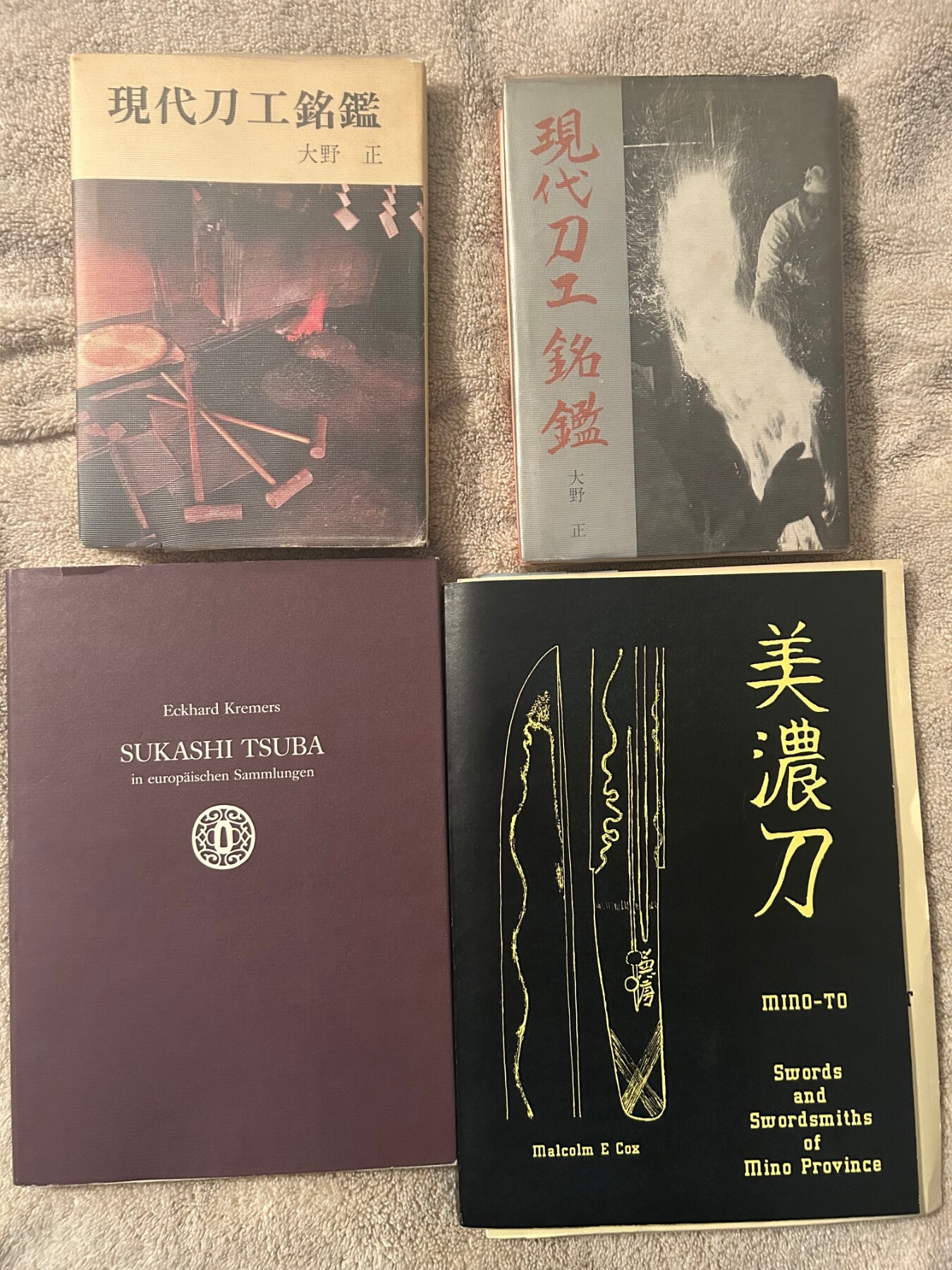 Mark Posted September 25 Author Report Posted September 25 Showa wordsmiths $95 Shin nihonto no kantei nyumon with translation (Signed by Harry to previous owner) $175 Papinot $20 Nihon Rekishi no Zuikan $20 Quote