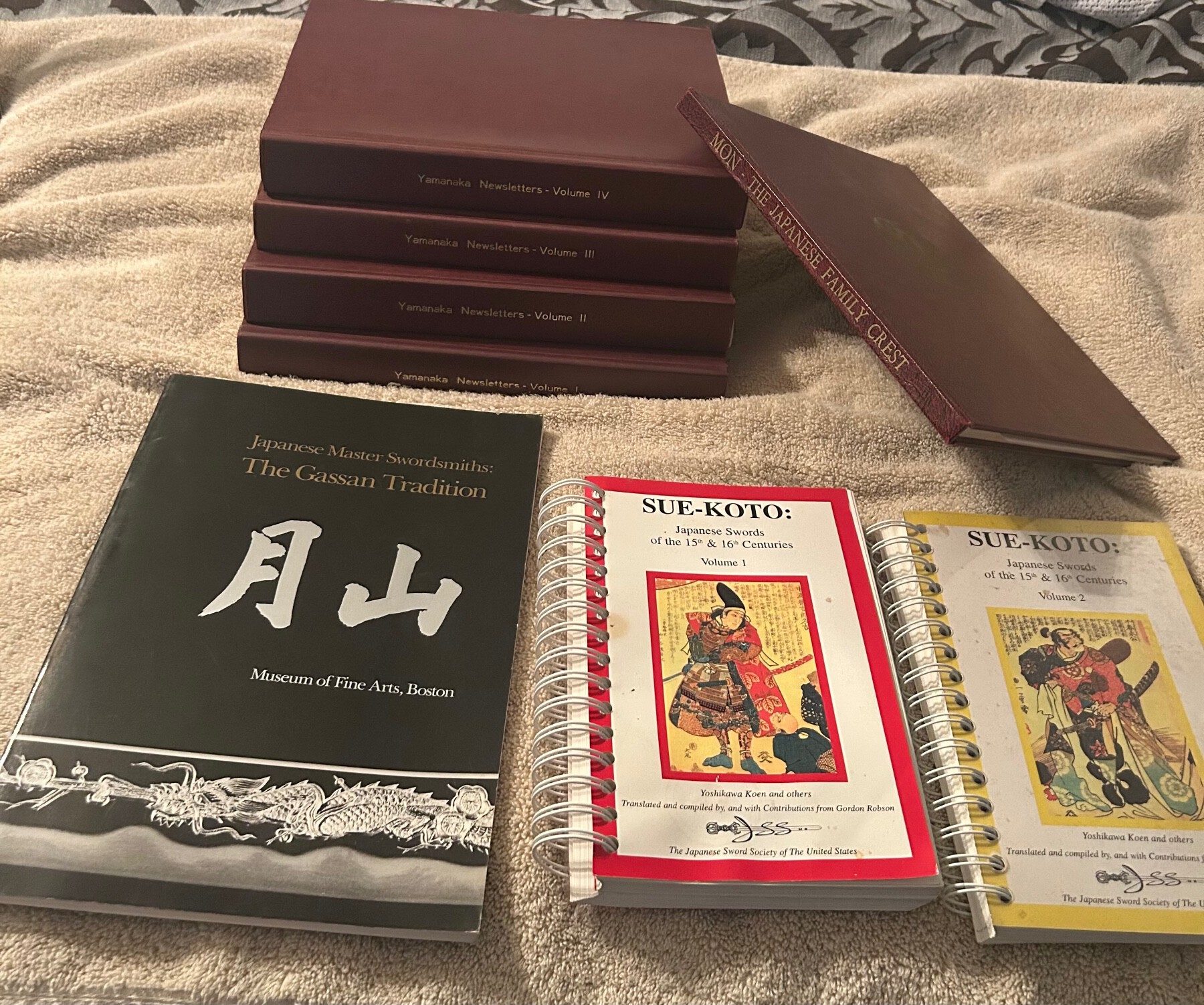 Mark Posted September 24 Report Posted September 24 i have a bunch of books (duplicates) that i don't need. I am going to post a couple of pictures of the pile and then in the next few days i will list individuals with prices and descriptions. I partner with Grey and he has given me permission to use information from his website https://japaneseswordbooksandtsuba.com/ but if Grey has the book please buy it from him. All books are in decent used condition, please ask any questions, i can send additional pictures. There is NO smoke odor I am in Ohio USA i can mail USPS Media Mail or any way the buyer wishes. Postage and any other fees are the buyers responsibility but i only charge actual shipping cost. I will offer them here first, then in a few days i will list them on FB thanks for looking Mark nixe@bright.net 1 Quote