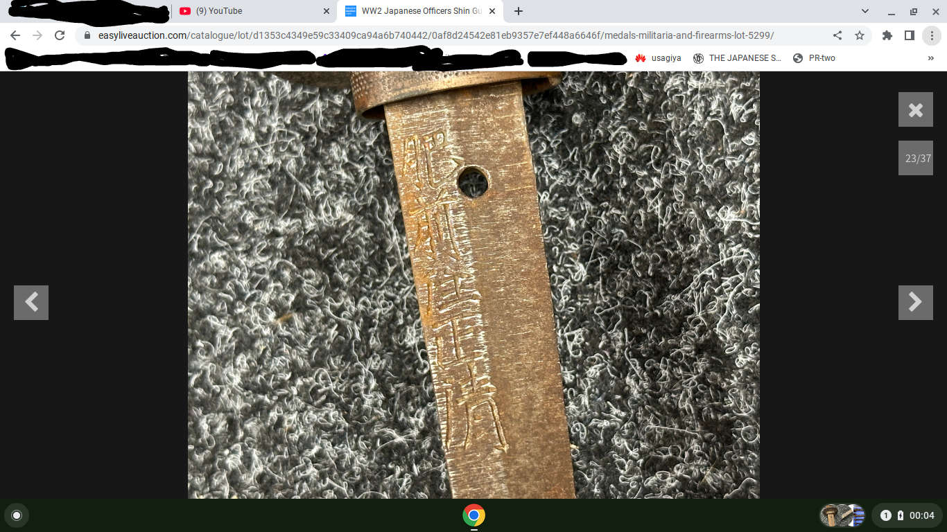 charlesf Posted September 25 Report Posted September 25 Recently bought a shingunto at auction signed 'Hizen Ju Masakiyo' exactly the same as in the oshigata database with assembly number '35' painted on to the tang. Blade is stained and appears to be a gendaito,there is hada visible and what appears to be a water quenched hamon,however,in certain lights there is a blue-ish hue to the blade which makes me think it is not made out of pure tamahagane. It's impossible to capture as an image so please don't bleat about the lack thereof . . . . . . Has anyone else seen the same? charles. Quote