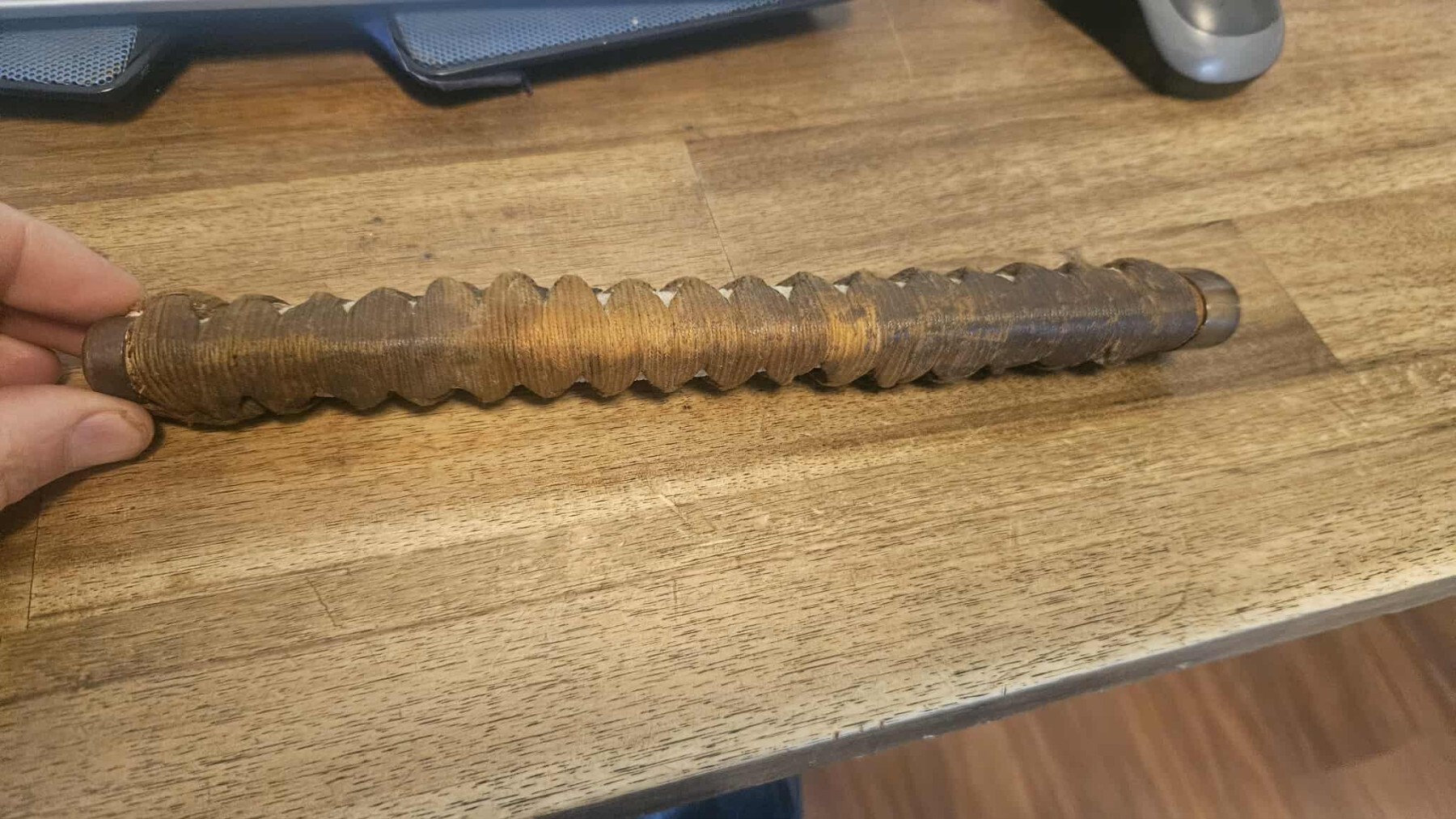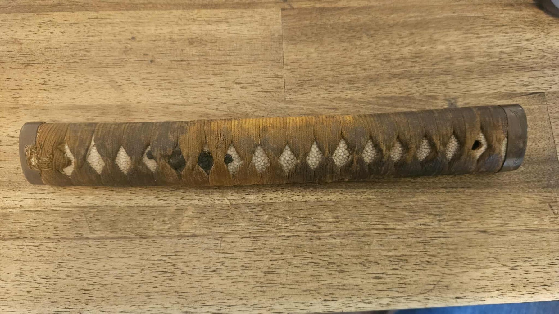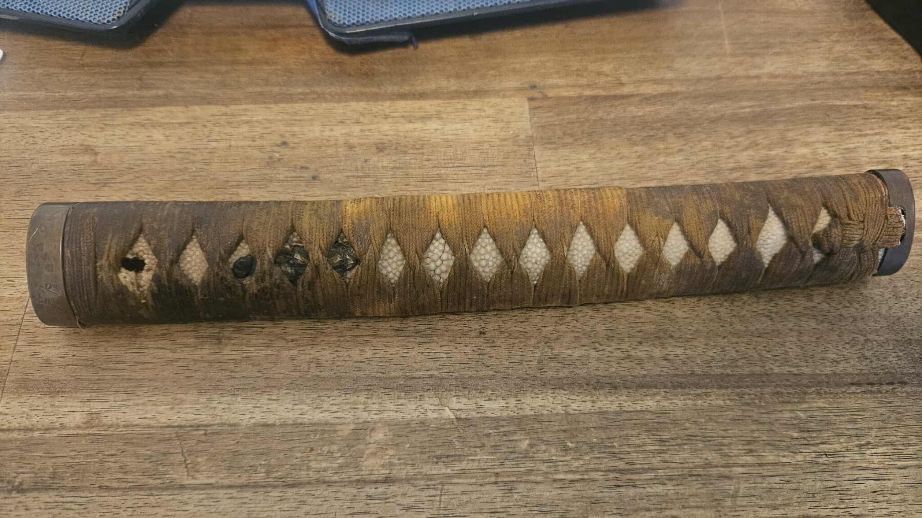 lonely panet Posted Monday at 10:46 PM Report Posted Monday at 10:46 PM found this old tatty tsuka in my box of junk copper f/k and low level menuki. 265mm long $65 USD Quote