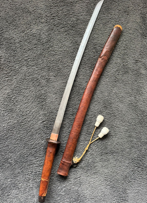 Bruce Pennington Posted 20 hours ago Report Posted 20 hours ago I have seen quite a few, and several where the tsuka was just plain wood, covered tightly in leather. The tsuba might be a civil one. Quote