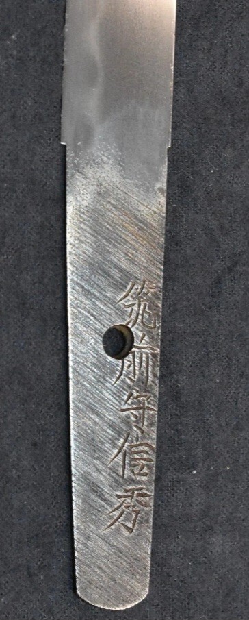 Ray Singer Posted Monday at 10:32 PM Report Posted Monday at 10:32 PM Mei: Chikuzen (no) kami Nobuhide Date: Keio gannen hachi gatsu hi (a day in the 8th month of the year 1865) Nobuhide was an extremely famous swordsmith and student of Kiyomaro. Unfortunately the inscription on your sword does not appear to be authentic but you can research further and see authenticated examples online. https://nihontoclub.com/smiths/NOB174 2 Quote