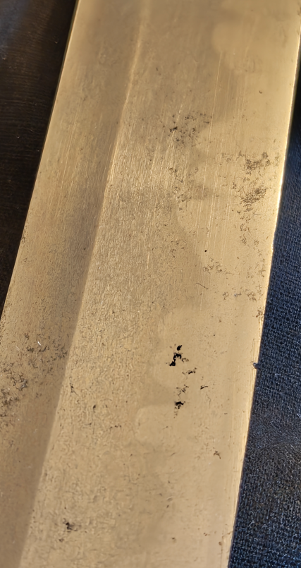 nihonto_1 Posted March 4 Author Report Posted March 4 33 minutes ago, klee said: Looks like there is fumbari in the pic but the nakago angle does look a bit odd for sue bizen. The mei also looks a bit crude which is also uncharacteristic of sue bizen. And I dont think any of the Norimitsu smiths did crab claw like this It does look old however so I personally would lean towards a gimei Sukesada thats been faked Hi, yes around the habaki the blade widens quote a bit, I think this blade has seen a few redesigns in it life. Quote